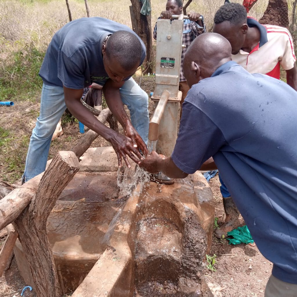 Los ging es, zwei Stunden endlos holperige Strecke, zwischendurch mit Autopanne, nach den ersten 5 km eingestaubt mit rotem Sand von Kopf bis Fuß, auf das Armaturenbrett hätte man schreiben können, wir hatten bei der Hitze natürlich die Scheiben unten, da das Auto keine Klimaanlage besaß. Die Landschaft an mir vorüber ziehen zu lassen, die Menschen die uns winken, die Kinder, die schreiend hinter dem Auto herlaufen, die Kuh- und Ziegenherden, die vor uns ordentlich Staub aufwirbeln, die Schirmarkazien/Kakteenbäume, der imposante Kilimanjaro in greifbarer Nähe, endlose Weite … das ist für mich Afrika/Kenia aus Sicht eines Europäers. Man vergisst in solchen Momenten die Armut und sieht nur das andersartige Schöne, die atemberaubende Landschaft. Je mehr wir uns von Loitokitok entfernten, desto trockener wurde die Region, grün war kaum noch zu sehen, nur noch völlig vertrocknete Landschaft, roter Staub ohne Ende, ausgetrocknete Flussbetten, verendete Tiere bzw. Skelette als Anzeichen der langanhaltenden Trockenheit/Dürre, die in vielen Regionen Kenias die Bevölkerung seit Jahren leiden lässt, denn seit mittlerweile vier Jahren ist die große Regenzeit ausgeblieben.