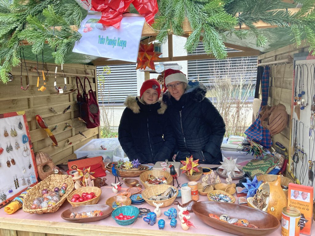 Nach 2 Jahren (COVID-Pause) gab es endlich wieder einen Weihnachtsmarkt am Grengel und auch unser Verein war wieder mit einem Stand vertreten – unser kenianisches Kunsthandwerk war oft der Einstieg für ein weiterführendes Gespräch über unsere Vereinsarbeit.